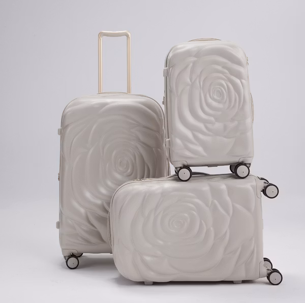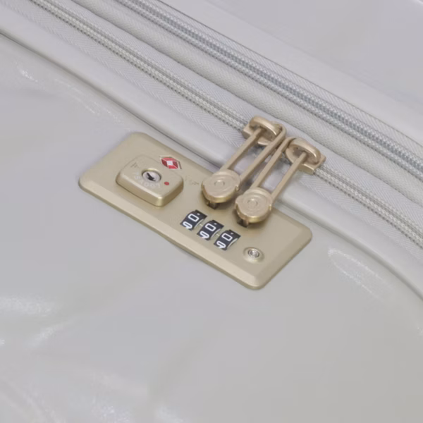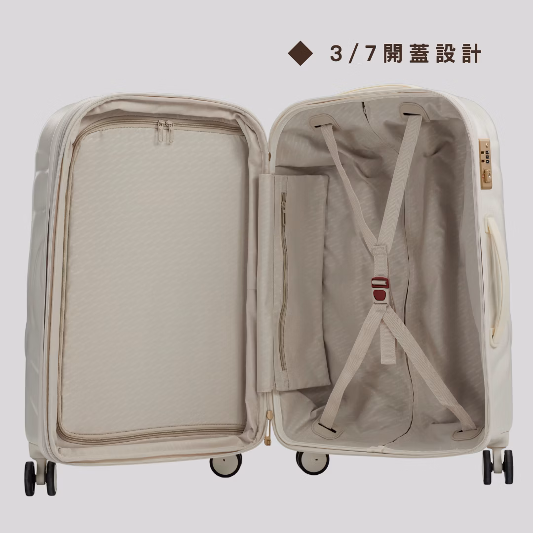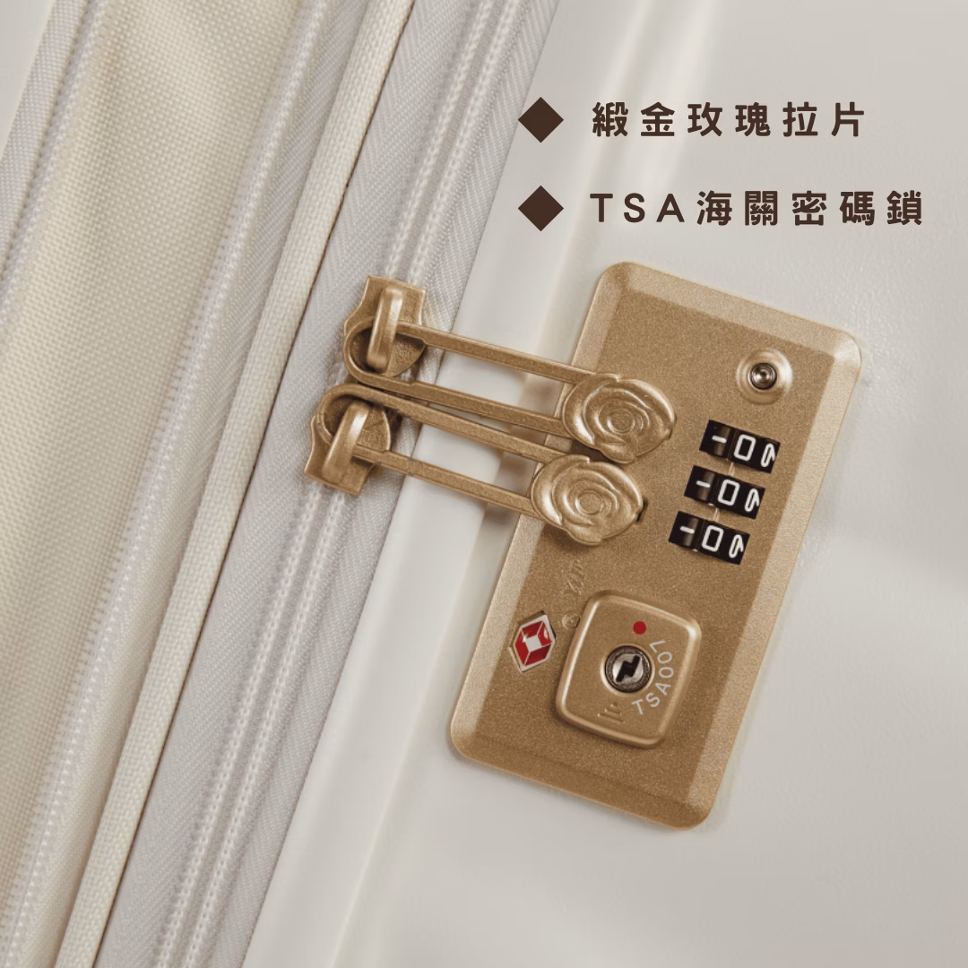運用全箱體低彩奶茶色,搭配同色系拉鍊與緞金細節。