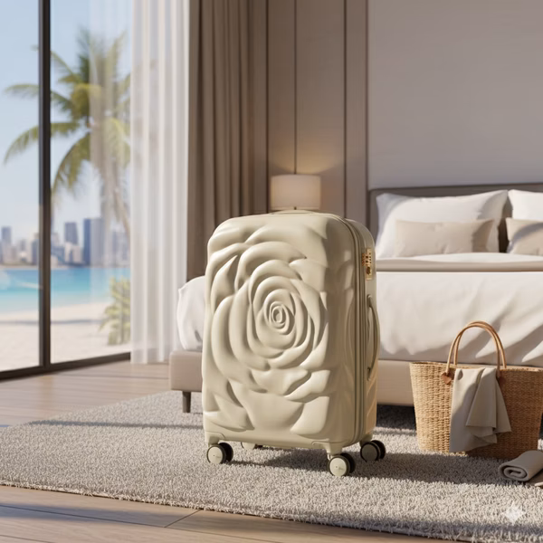 運用全箱體低彩奶茶色,搭配同色系拉鍊與緞金細節。