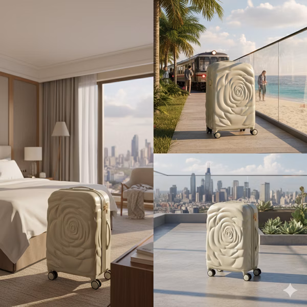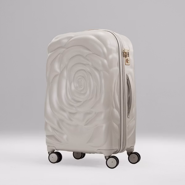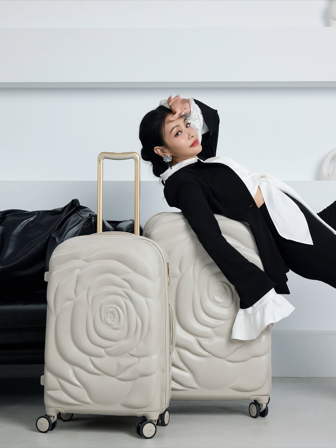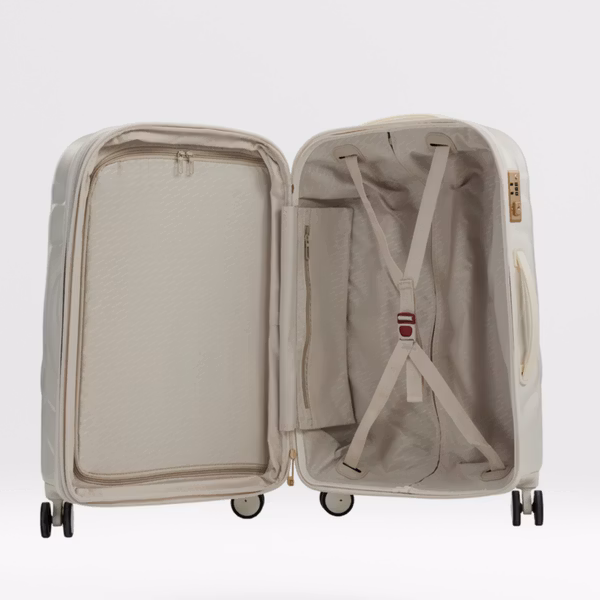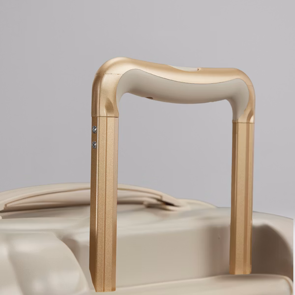 運用全箱體低彩奶茶色,搭配同色系拉鍊與緞金細節。